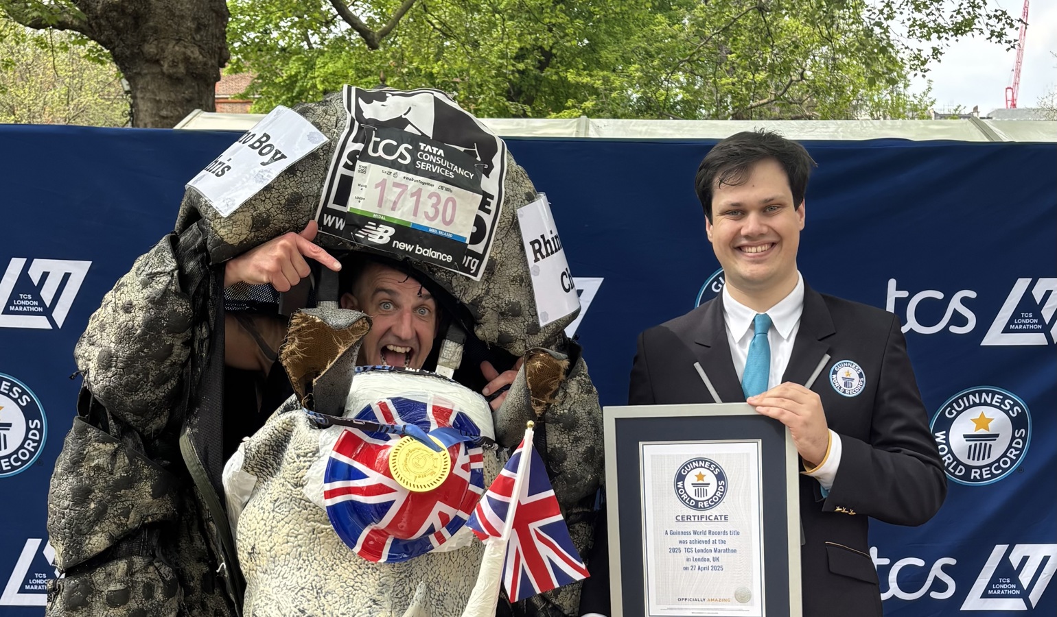 And his achievements have meant that Chris and the Rhino have managed to achieve a whole new Guinness World Record at the London Marathon in the not so well known, but impressive category of ‘most marathons run in the same three dimensional costume.’
